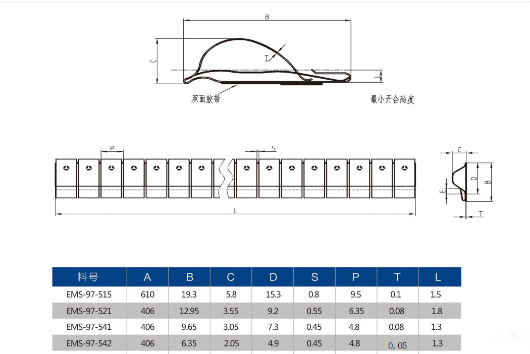 進(jìn)口原材料材料C17200 EMI屏蔽簧片U型槽導(dǎo)電銅簧片