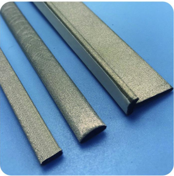 用金屬絲編織而成的套管(形狀類似屏蔽電纜的屏蔽層),可以是空的,也可以是在內(nèi)部插入橡膠芯增加反彈力,減小永久性形變。由于金屬絲具有較大的電感,在高頻時(shí),感抗較大,因此,金屬絲網(wǎng)襯墊的直流電阻很小,但其射頻阻抗卻很大。綜上所述,金屬絲網(wǎng)密封襯墊的低頻屏蔽效能較高,但高頻屏蔽效能卻比較低。