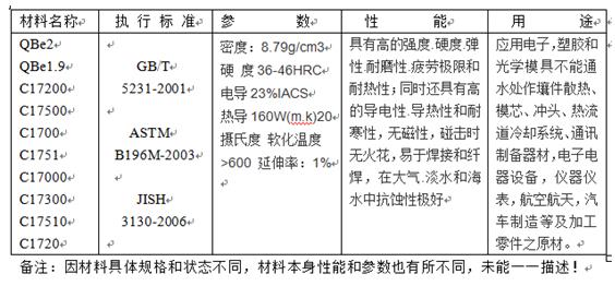 鈹銅是一種過飽和固溶體銅基合金,是機(jī)械性能,物理性能,化學(xué)性能及抗蝕性能良好結(jié)合的有色合金,經(jīng)固溶和時(shí)效處理后,具有與特殊鋼相當(dāng)?shù)母邚?qiáng)度極限,彈性極限,屈服極限和疲勞極限,同時(shí)又具備有高的導(dǎo)電率,導(dǎo)熱率,高硬度和耐磨性,高的蠕變抗力及耐蝕性,廣泛應(yīng)用于制造各類模具鑲嵌件,替代鋼材制作精度高,形狀復(fù)雜的模具,焊接電極材料,壓鑄機(jī),注塑機(jī)沖頭,耐磨耐蝕工作等。鈹銅帶應(yīng)用于微電機(jī)電刷,手機(jī)、電池、產(chǎn)品上,是國(guó)民經(jīng)濟(jì)建設(shè)不可缺少的重要工業(yè)材料。